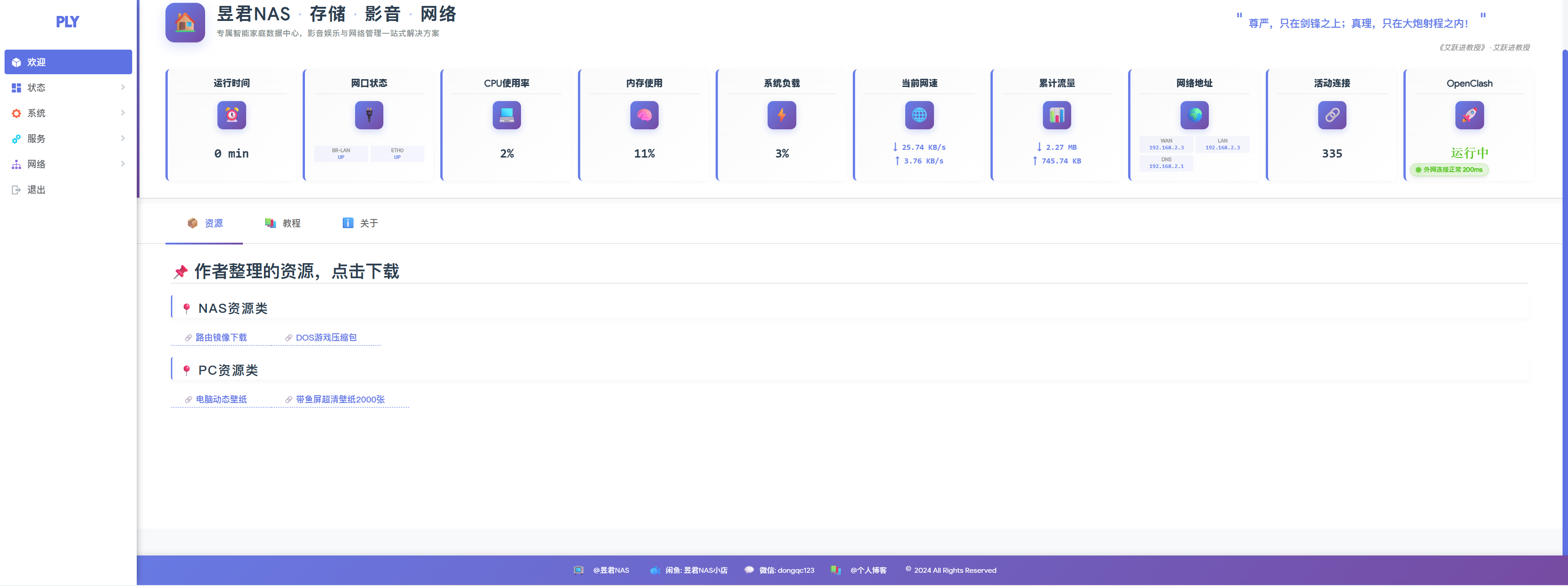 一个带欢迎页面的镜像 增加了一些系统信息观察卡片和持续更新的资源分享页面